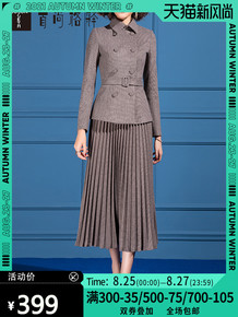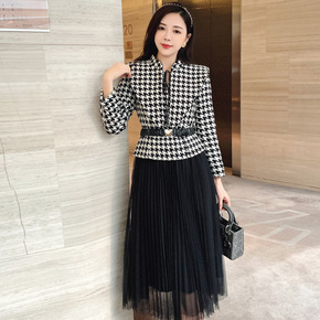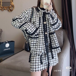 小香风套装小香风毛呢套装女春秋气质时尚千鸟格半裙套...