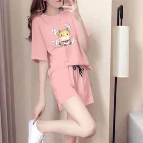 网红运动套装女夏季短袖短裤学生韩版宽松大码休闲两件...