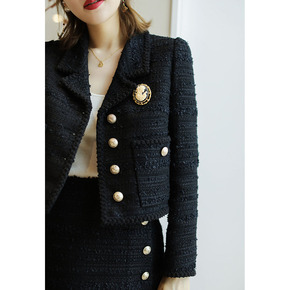 小香风翻领编织短裤外套+高腰半裙套装两件套秋冬名媛...