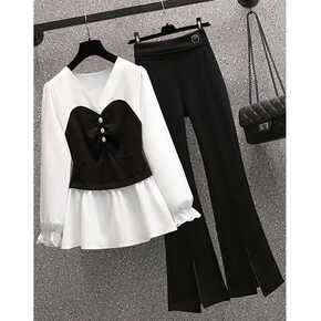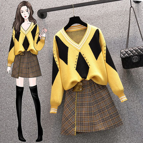 a单/套装2021秋季新款大码女装微妹妹洋气遮肚子...