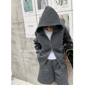 LOVELY2021早秋新款华夫格卫衣外套女简约时...