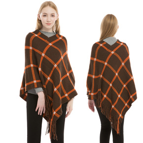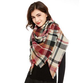 亚马逊跨境专供秋冬格子仿羊绒保暖围巾加厚加大披肩百...