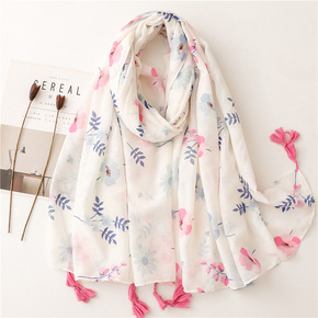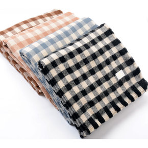 素雅日系小清新棉麻手感围巾丝巾格子纹小花手工流苏旅...