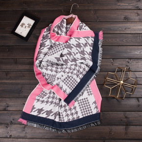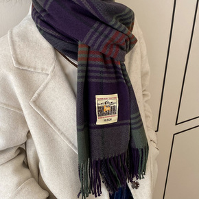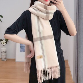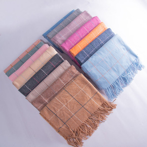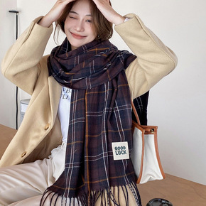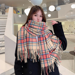 高品质冬季加厚羊绒格子围巾女新款韩版百搭学生披肩两...