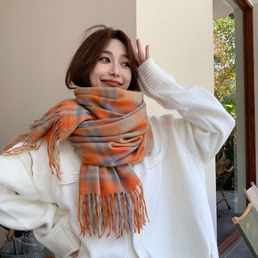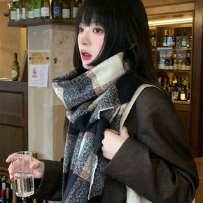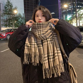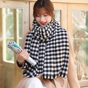 韩版格子围巾女ins秋冬韩版百搭学生披肩保暖围脖潮...