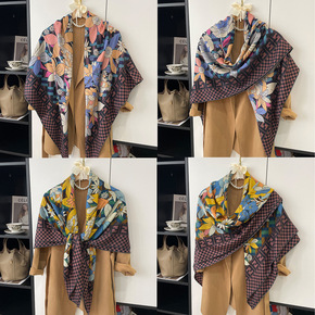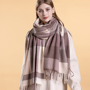 2022新款秋冬围巾条纹格子印花仿羊绒围巾女保暖披...