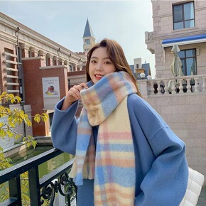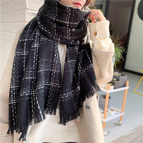 韩国东大门格子围巾女冬季保暖ins风围脖网红披肩情...