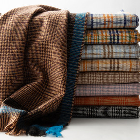新款日韩冬季经典格保暖复古梭织百搭女围巾披肩两用厂...
