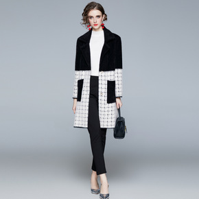 2021新款西装领秋冬水貂绒法式轻奢女神风拼色外套...