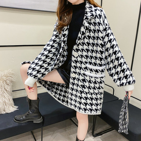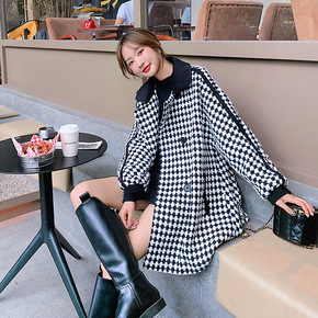 千鸟格毛呢外套中长款秋冬2021新款韩系显瘦小个子...