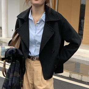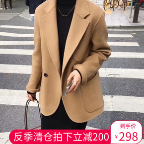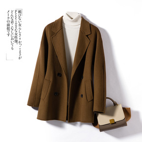 欧货羊绒大衣女短款西装2021春秋新款韩版双面呢百...