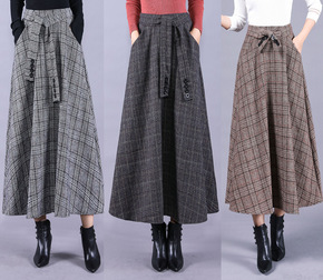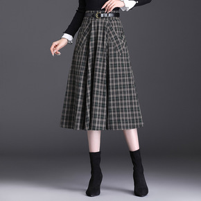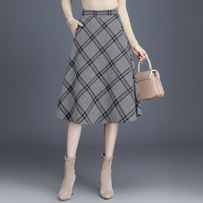 时尚格纹毛呢A字半身裙2021秋冬新款高腰大摆裙气...