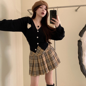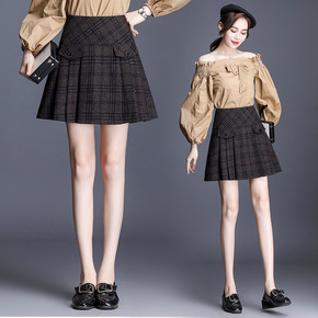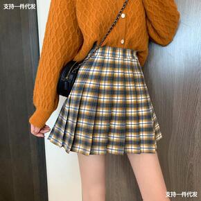 2021新款小众高腰显瘦格子百褶a字短裙子秋季气质...