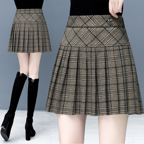 毛呢半身裙女秋冬款a字短裙高腰伞裙小摆百褶裙202...