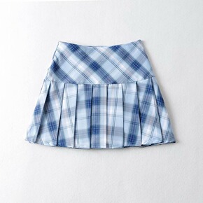 学院清新甜美格纹印花百褶裙半身裙2021夏季新款时...