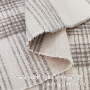 现货供应 新款女装双面格子毛呢布料 秋冬外套羊绒大...