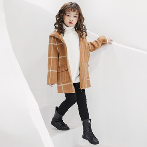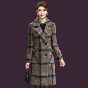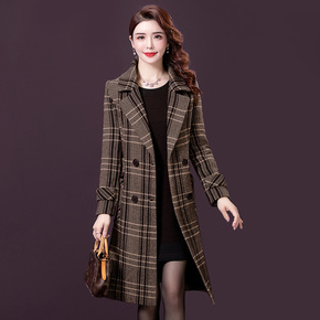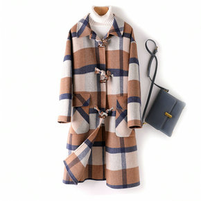 格子中款双面羊绒大衣女2021秋冬新款韩国宽松时尚...