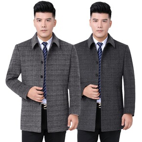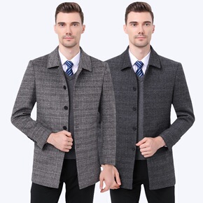 秋冬季高档加棉羊绒大衣男中长款帅气羊毛呢子中青年风...