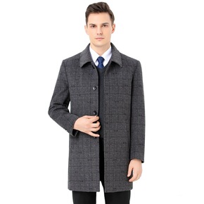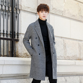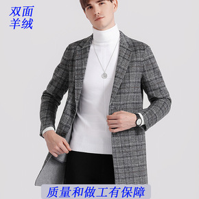秋冬双面毛呢大衣格子羊绒毛大衣男中长款羊毛呢风衣男...