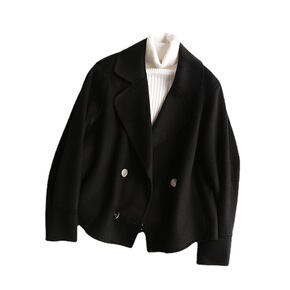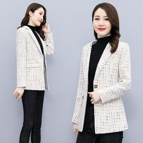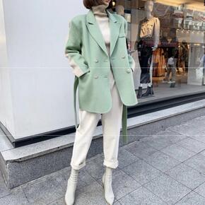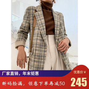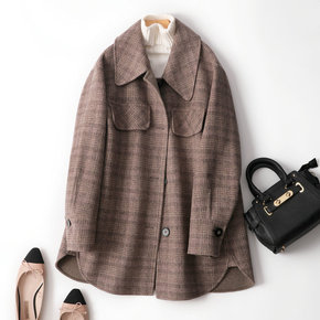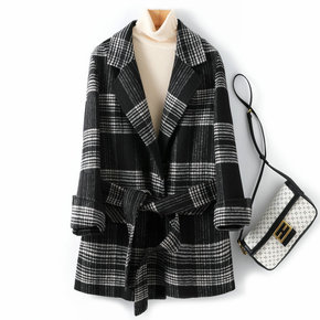 2020新款格子双面羊绒大衣韩版西装款双面呢羊毛外...