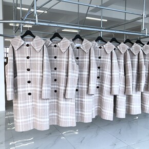 现货 80双面澳毛小千鸟格 新款秋冬毛呢大衣双面羊...