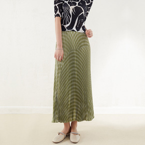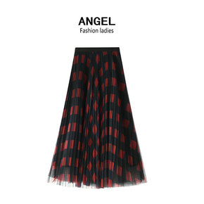 彩色格子网纱半身裙百褶裙中长款纱裙8329...