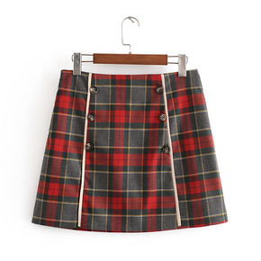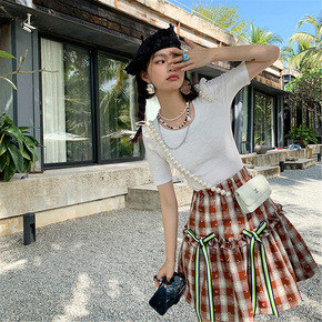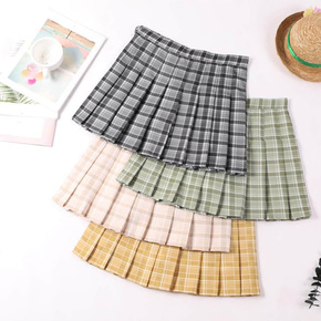 代发学院风气质夏季短裙子复古高腰格子半身裙女显瘦百...