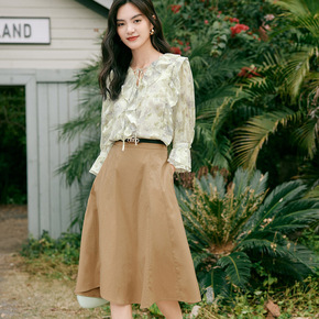 YFL 2022春季新款不规则气质高腰中长半身裙女...