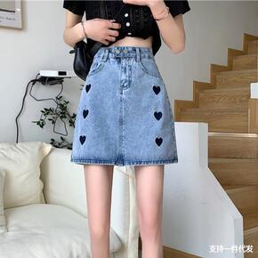 mo心动至上又辣又美万能高腰百搭前开叉牛仔裙性感辣...