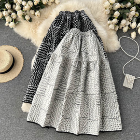2022春装新款设计感提花蓬蓬裙A字中长款半身裙拼...
