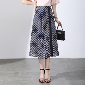 印花长款简约拼接修身时尚A字裙夏季新款高腰通勤气质...