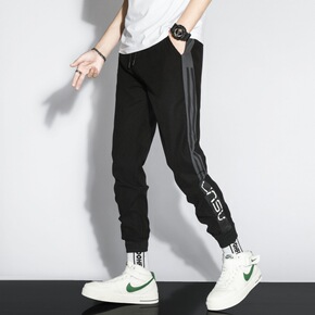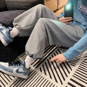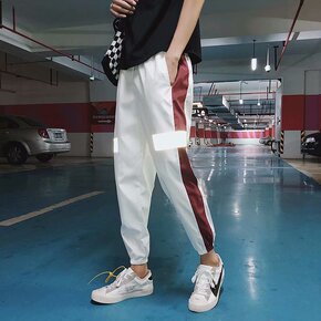 秋冬季韩版反光印花裤子男士情侣款嘻哈宽松潮流青少年...