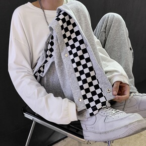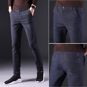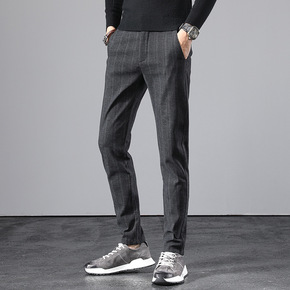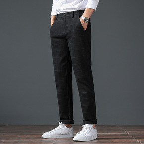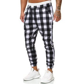 秋季跨境欧美新款男士黑白格子休闲小脚裤wish速卖...
