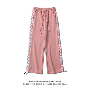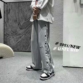 2021秋冬新款运动休闲裤男复古腰果花拼接直筒排扣...