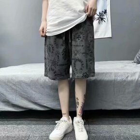 夏季薄款男士休闲短裤修身五分裤碎花布料5分裤印花中...