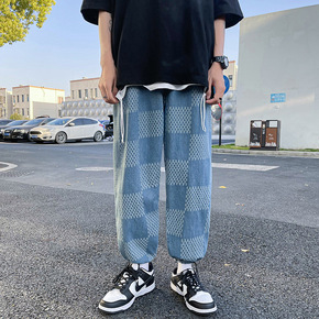 牛仔裤男潮牌ins夏季薄款休闲裤宽松直筒韩版潮流帅...