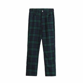外贸女装2020春季新款欧美bm风高腰墨绿色格子百...