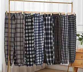 巨好穿舒适垂顺棉麻黑白小个子格子裤束脚哈伦宽松休闲...