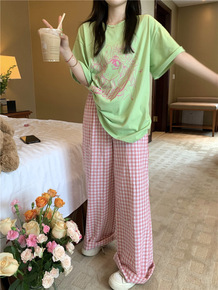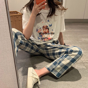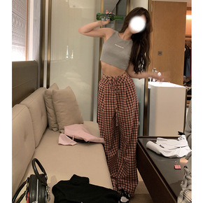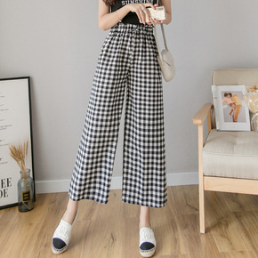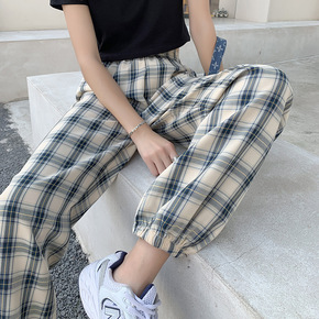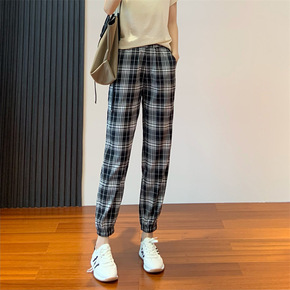 宽松韩版格子裤女2022夏季新款高腰显瘦休闲裤子百...
