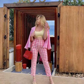棋盘格裤子女春秋季2022年新款黑白格子裤高腰休闲...