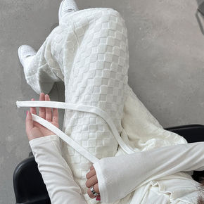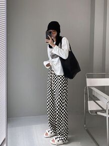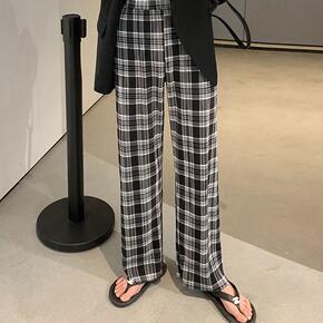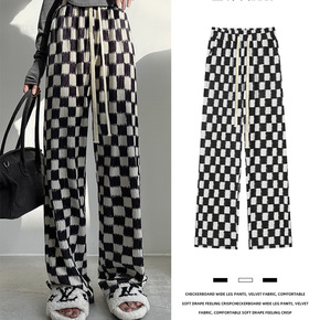 直筒春秋潮ins垂感复古百搭黑白格子棋盘格长裤阔腿...