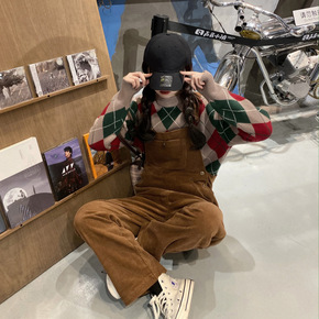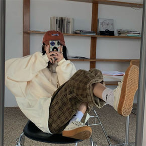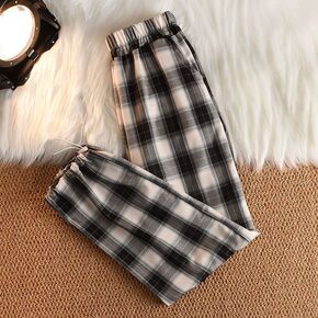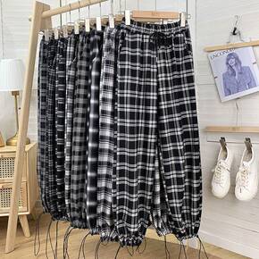 黑白格子卫裤少女森系春秋款宽松直筒高腰垂感束脚阔腿...