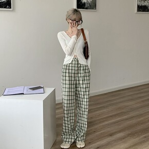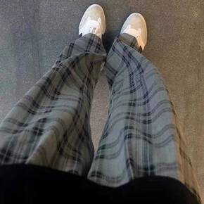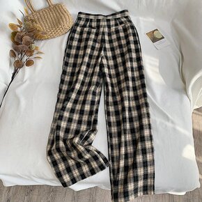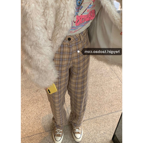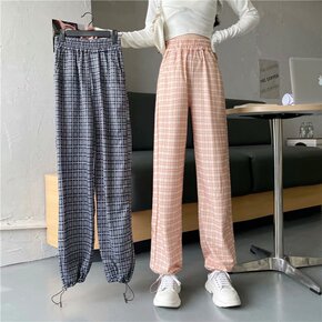 日常显高格子裤!韩风百搭高腰显瘦格子直筒裤休闲阔腿...