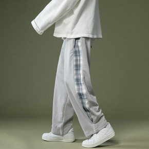 高街暗黑系卫裤男韩版潮流宽松运动休闲国潮嘻哈格子拼...