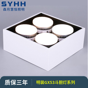 明装筒灯方形格栅灯四头盒子客厅斗胆灯家用无主灯照明...