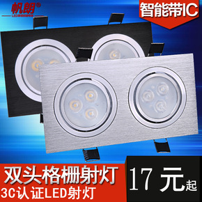格栅灯led天花灯双头筒灯嵌入式方形射灯斗胆灯15...