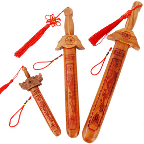 山东肥城厂家销售朱砂七星桃木剑儿童剑雕刻挂件随身摆...