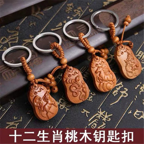 巧玲珑桃木十二生肖属相雕刻钥匙扣简约创意随身钥匙扣...