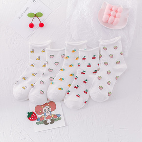 白色卷边水果胡萝卜中长筒袜可爱日系少女心草莓水蜜桃...