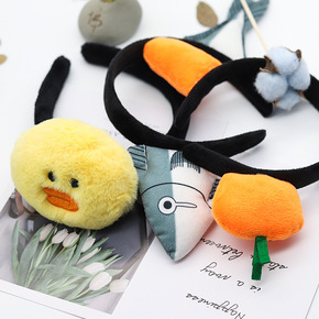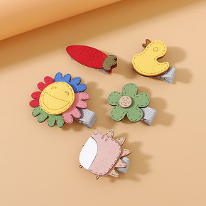 女童可爱皮革太阳花小鸭子发夹卡通小象樱桃胡萝卜边夹...